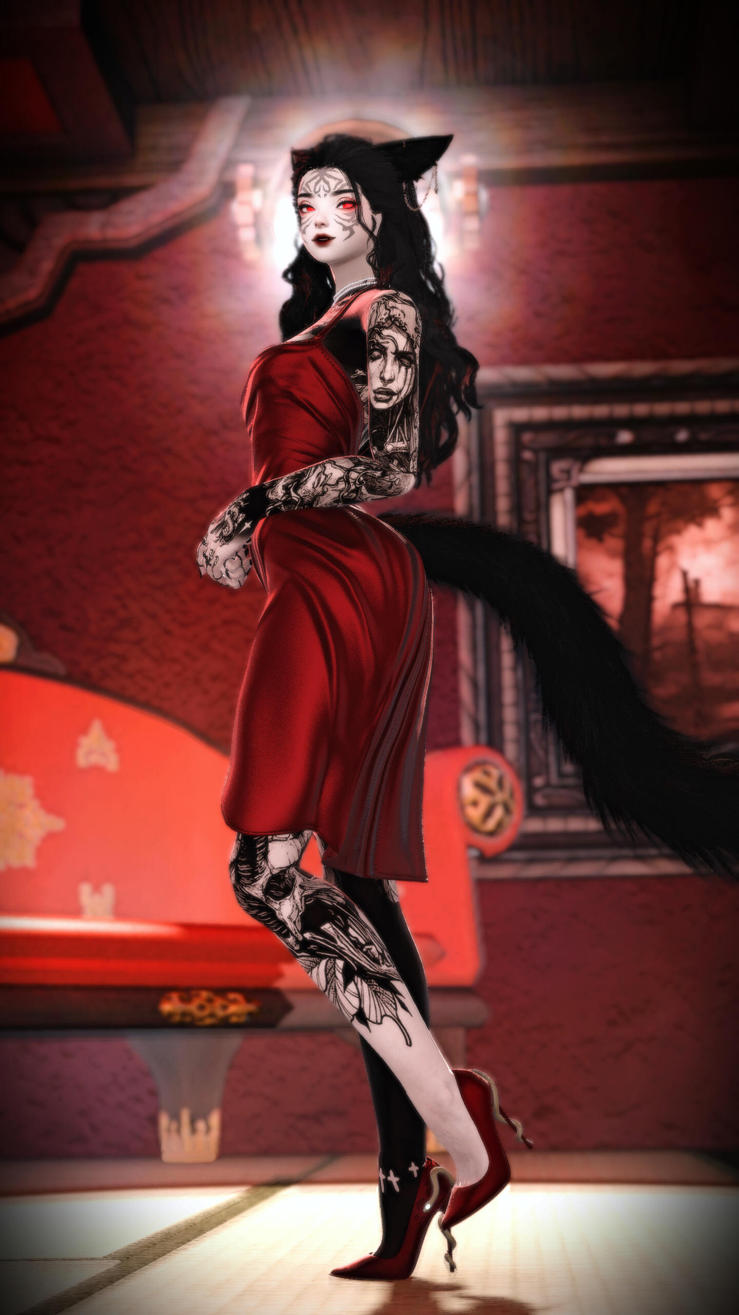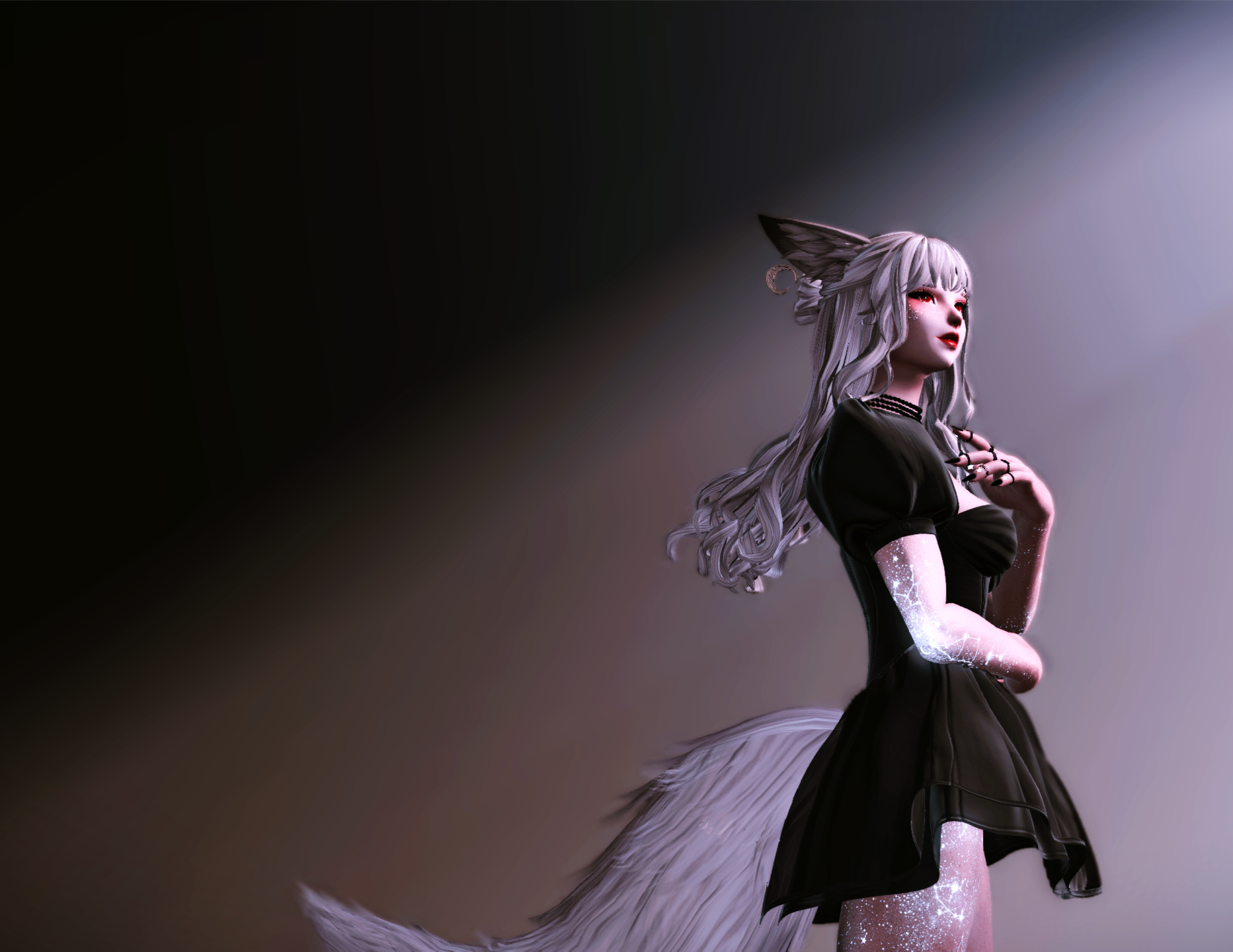 BACKGROUND. Born and raised in the Golmore Jungle, a forbidden love grew between the daughters of the tribe's elders. They shared secrets and dreams under the starlit sky for half a decade, yearning for a life where they could live without fear of judgement. After months of planning, the teens plotted their escape in the middle of the night, stealing away on a ship bound for Kugane.Once accustomed to the outside world, the bond between the two fizzled out and they went their separate ways. Knowing she couldn't return to her homeland, Taranis worked as a server at the Umineko teahouse for a few years to pass the time and deepen her pockets.The young Rava woman grew restless - constantly finding herself eavesdropping on the international traders and tourists as she served them their meals. Taranis's sense of wanderlust was insatiable, spending each night staring at the very stars that'd guided her away from her village all those years ago.Now a grown woman, the Viera still dreamt of exploration and enlightenment. She decided it was time to take charge of her future once more, enrolling in classes at the Doman Enclave that would teach her the art of healing.Much to her tutor's surprise, the arcane magicks came naturally to Taranis. Astrology was her calling, and she dove in headfirst. With nothing more than a torquetum, her tarot cards, and an eager heart, the Viera woman set her eyes to the horizon, ready to follow wherever the stars might lead.