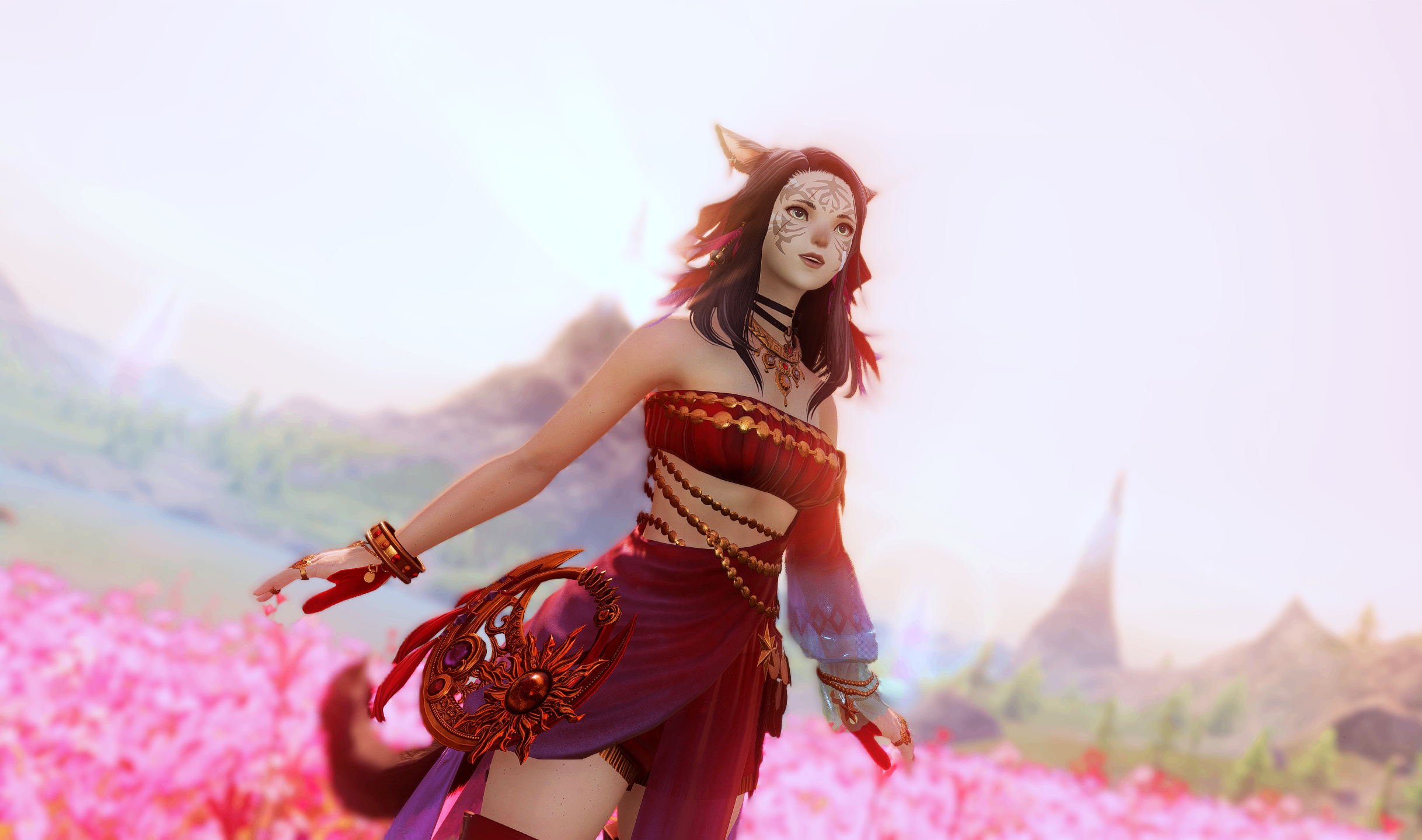 BACKGROUND. After nearly a decade of living a nomadic lifestyle with two young sons, Moku and Sagra Soleil returned to the land of the Dusk Mother when they discovered they were going to have a daughter. With a Raen mother and a Xaela father, a baby girl born with pearly white scales that gleamed in the sun amongst a tribe of Xaela men and women was something none of the elders, let alone her parents, could’ve ever imagined.Myria, one of very few women to be born into their tribe, was protected to a fault. The adults in her life did everything they could to snuff out her curiosity - always responding with worried expressions and dismissive comments any time she asked questions about the world beyond the village walls. One source of solace, however, was the little Raen girls’ older brothers. They were her best friends and greatest teachers, regaling her with stories of their hunts and adventures across the vast landscape of the Steppe. Wanting nothing more than to join them in their escapades, she begged to follow in their footsteps in the fields only to be told no at every turn. Instead, she was tutored rigorously in the art of white magic for years, eventually being assigned the position of personal healer and caretaker of the village elder.Myria had heard whispers around town that the elderly Xaela’s mind was going, and that he would likely require care at all hours of the day. To her surprise, however, the man seemed to light up when she’d walk into the yurt. Excited to share stories of his own youth, he was lively and animated, always bringing a smile to Myria’s face. One afternoon she broke down, confessing her dreams of adventure and deep disappointment knowing they’d never come to fruition. The elder snapped her out of it, scolding her for such pessimism, before tossing her a notebook, launching into a recounting of every survival tactic he could think of.He taught her what beasts were easiest to track and how to do so, listing the local fauna and ranking it from easiest to most difficult to slay. He taught her about fishing and foraging, even how to build a bow and a trappers kit, should she ever find herself on the run. She learned about different types of flowers and mushrooms, what was safe to eat and what wasn't. How to purify water, and what poisonous plants she'd have to look out for.As the sun began to set and he finished his lecture, the old man settled back in his chair with a wink, letting her know that a trader would be in town the following day and would likely need a volunteer to assist with moving a shipment of textiles across the Ruby Sea to Kugane. Before he sent her home for the night he penned a note to her parents, calling for their understanding as he’d enlisted her to join the couriers that would arrive the next day.Through a tearful exchange, Myria kissed her parents goodbye and hugged her brothers tightly, promising to write as soon as they docked in the city. Just before the caravan made its departure, the village elder ducked out of his tent to offer a knowing smile, waving farewell as the young woman began her journey across the plains to a brighter future.